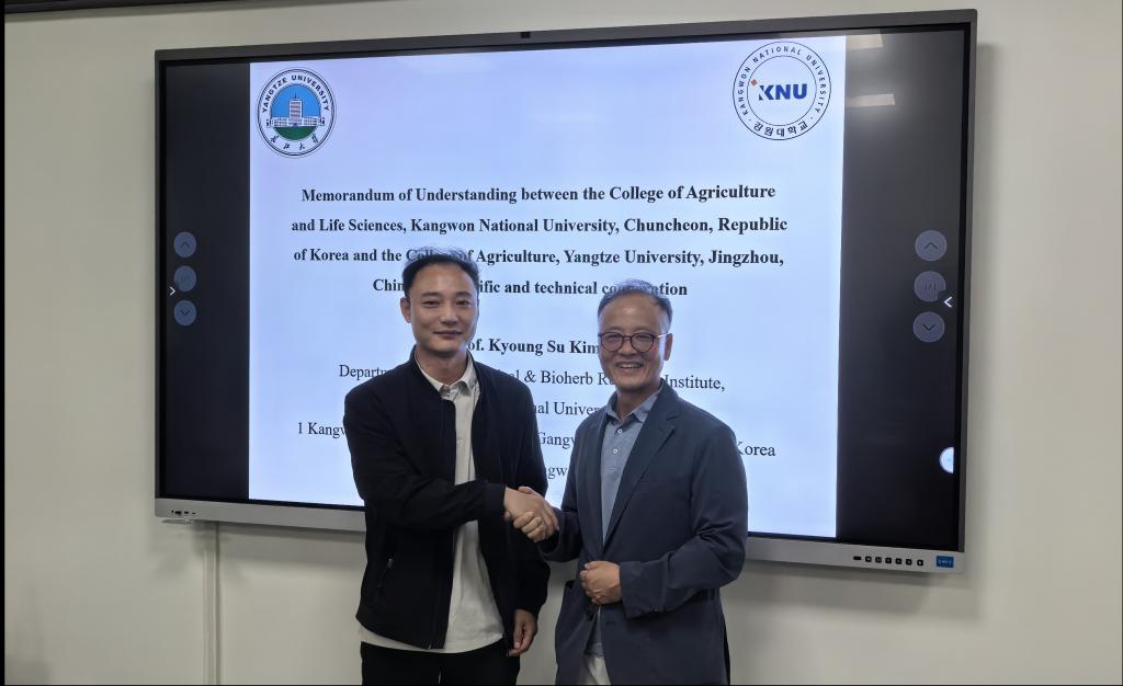 (通讯员 付腾)2025年10月12日下午,应必一运动官网付腾副教授邀请,韩国江原国立大学韩药生物研究所所长、植物医学系教授Kyoung Su Kim在西校区农科大楼3064会议室开展了学术交流,并签订合作协议。会议由必一运动官网经理助理邓建新教授主持,团队教师尹军良教授及相关师生参加了本次活动。