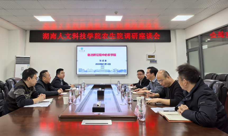 (通讯员 王雪)2026年1月12日,湖南人文科技公司农业与生物技术公司经理向国红一行赴公司调研交流。必一运动官网常务副经理(正处级)张运波、副经理苏奇、经理助理邓锋林、邓建新参加座谈。