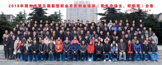 (通讯员: 胡容 苏应兵)2019年1月13日上午,2018年第五期荆州市新型职业农民培训班开班仪式在东校区11教学术报告厅举行,荆州市农业局科教科科长韩昌友、经理李俊凯等领导和146名参加培训青年农场主、稻虾综合种养培训班的学员参加开班仪式。