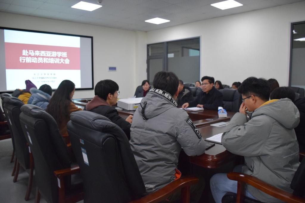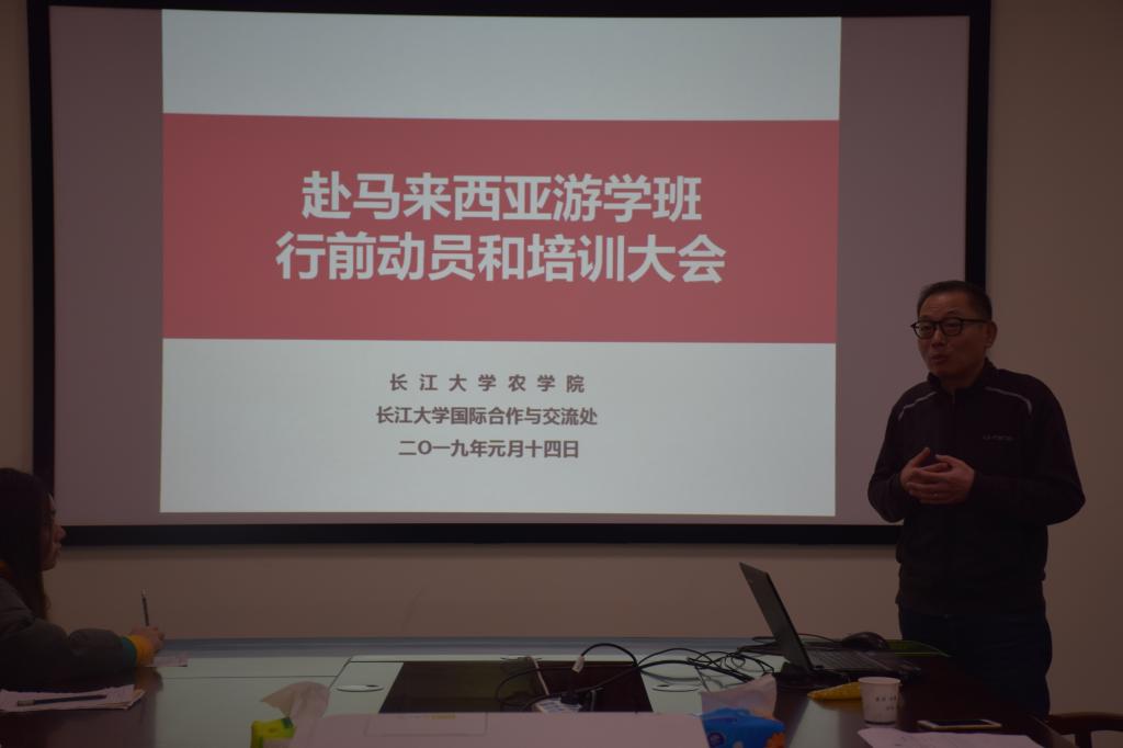 新闻网讯(员工记者 吴畅)1月14号下午2点30分,赴马来西亚游学班行前动员和培训大会于农科大楼3064召开。国际交流与合作处副处长刘武、王娟老师、老师宋玉婷,农公司党委副书记刘金科,辅导员万钰、帅婉璐和游学班全体成员参与此次会议。会议由刘金科副书记主持。