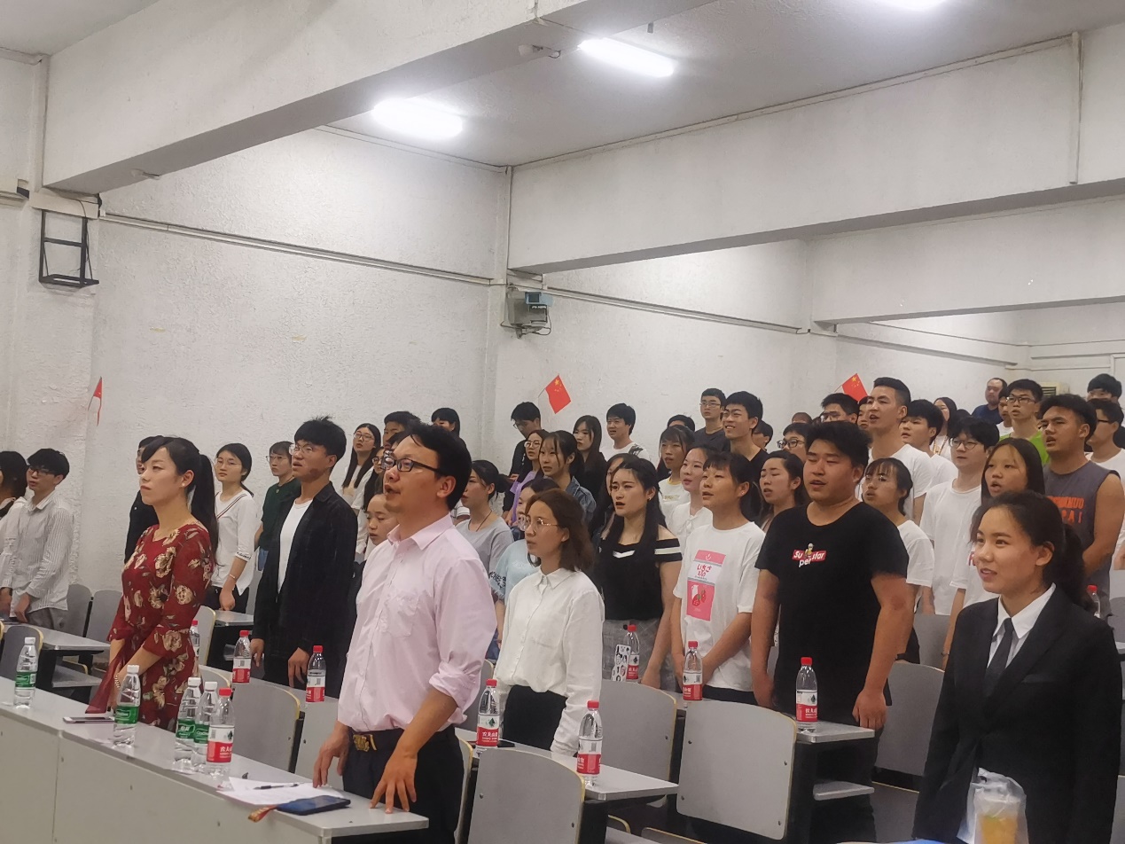 活动在激昂的国歌声中拉开帷幕,全体师生高唱《国歌》,用嘹亮的歌声寄托民族自豪感和自信心。紧接着,由姜酌悦、柴梦莹、吴修文和廖仁涛同学带来了《我的祖国》诗歌朗诵,她们用磅礴的气势谱写了祖国的新篇章,现场掌声雷动,将气氛推入高潮。