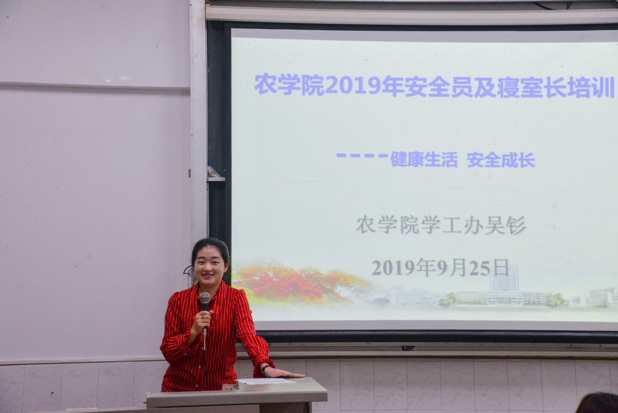 会议伊始,辅导员吴钐通过公司周边近期的安全事故来教育同学们时刻敲响安全警钟,提高安全防范意识。随后又从防意外,防骗,防水,防盗,防火五个方面为大家介绍安全问题及应对的方法。最后她告诫同学们:“安全才能成长,学习才能成才。希望同学们坚持以学为主,只要同学们致力于学习,就会远离是非人、是非地、是非事,我们的生活就多了一份宁静和幸福。”