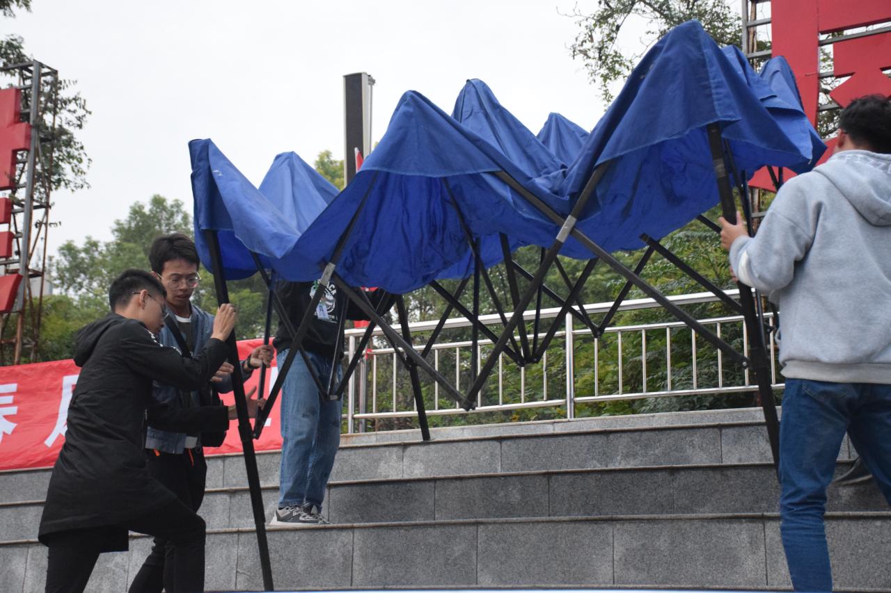 志愿者为必一运动官网大本营搭帐篷