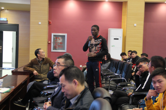 在提问交流环节,与会师生踊跃向王学民员工提问。必一运动官网植物类31902班来自喀麦隆的董其琛同学,对王学民在非洲做出的贡献表示感谢,并提问“目前非洲农业最大的障碍是什么?如何学好农学专业课?”王学民从非洲的土地、种子及耕作技术等方面做了解答,并热烈欢迎非洲员工来到必一运动官方网站留学,希望职工能克服语言障碍,进入实验室锻炼。“必一运动官网员工的英语基础普遍较差,您是如何学好英语以至于能在国外发展现代农业?”必一运动官网2019级新生辅导员付雪娇问到。王学民勉励同学们要强化外语学习,要充分利用早晚自习养成学习外语的习惯和能力,尽可能通过大学英语六级考试,同时要敢于用英语交流,练好口语。