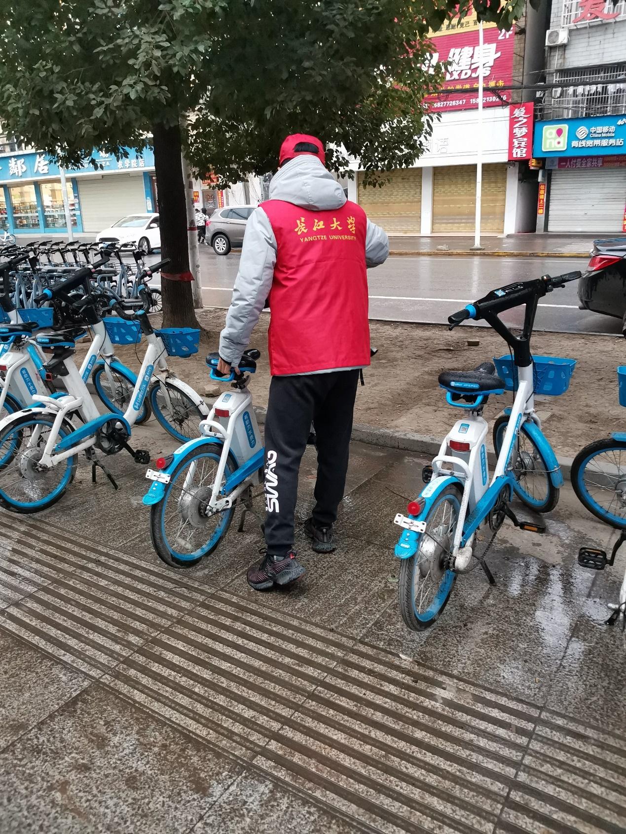 员工会干事两人一组,引导同学们停放好单车,又将乱停放的单车摆放整齐,并自发地捡起被乱扔在地上及角落的烟头、纸袋等垃圾,有的干事甚至特意准备了小垃圾桶放在公司门口,既方便了自己又方便了他人。