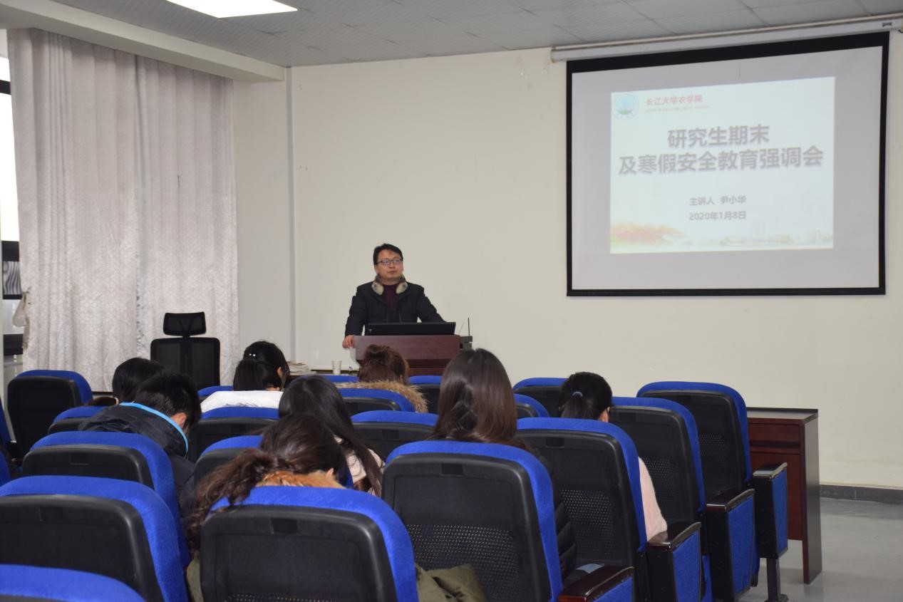 通讯社讯(通讯员 谭京红 胡义锋)为让研究生寒假提高安全意识,2020年1月8日中午12:20于农科大楼3073报告厅开展研究生寒假教育强调大会,本次强调会由研究生辅导员尹小华主持,兼职辅导员施秀飞、全体在校研究生参加。