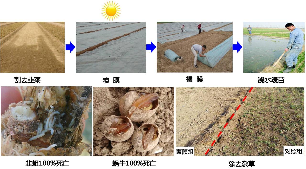 为了破解困局,该团队明确了“韭蛆”在全国的发生危害规律和致命弱点,开创性地发明了“日晒高温覆膜”防治韭蛆新技术。在无需使用任何化学药剂的情况下就能将韭蛆100%杀死,同时还能提高韭菜产量。