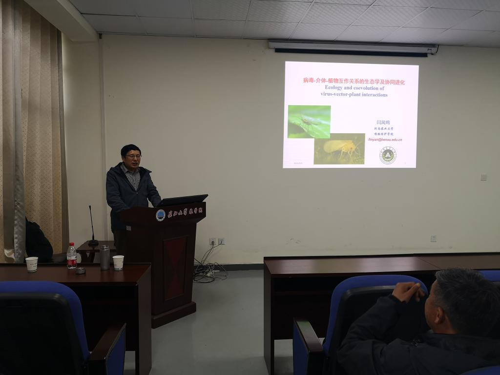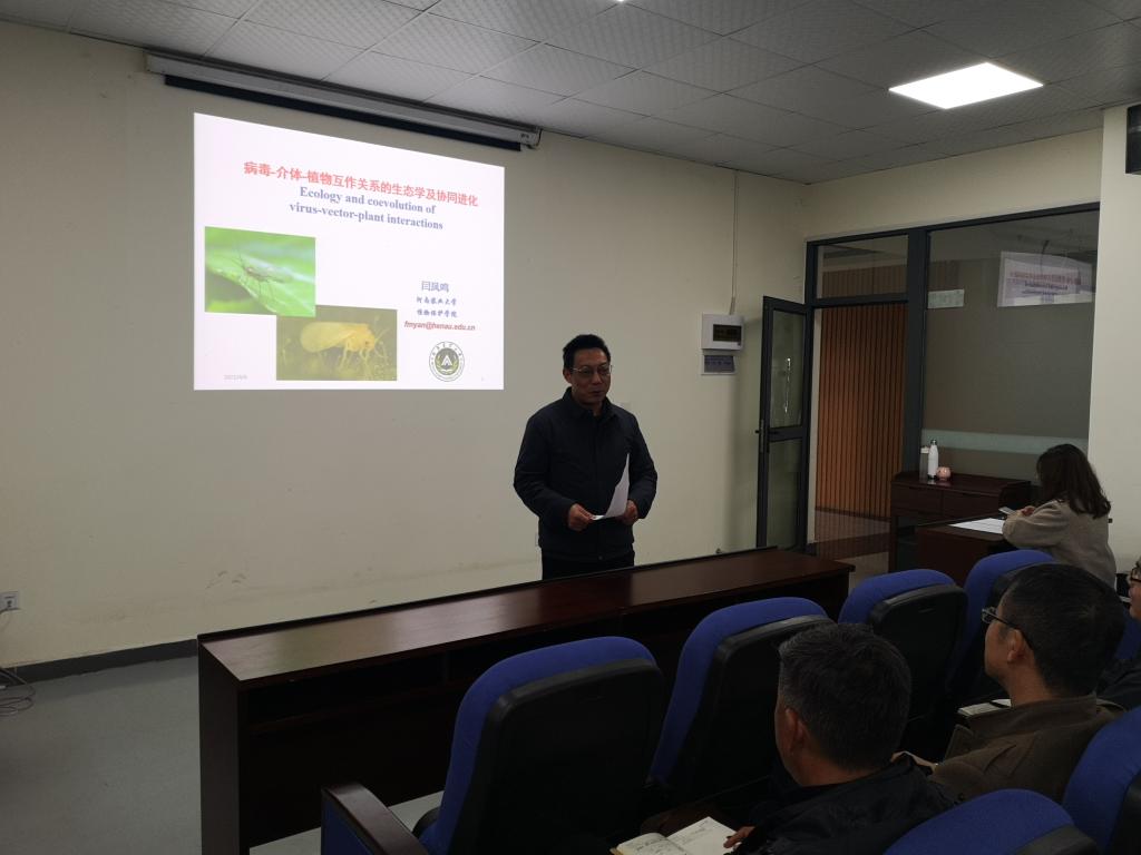 (通讯员 陈龙艳)4月6日下午2:30,闫凤鸣教授莅临公司在农科大楼3073学术报告厅作《病毒-介体-寄主互作关系的生态学和协同进化》专题报告,100余名师生参与学术交流。报告会由经理李俊凯教授主持。