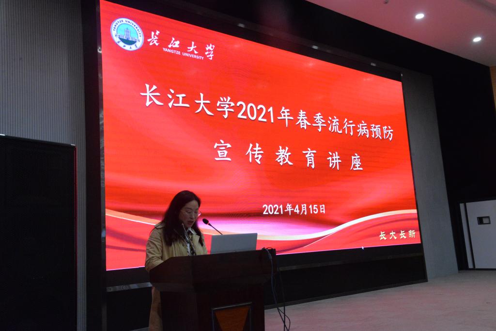 通讯社讯(员工记者 张杭/文 张璐萍/摄)为做好春季流行病预防工作、让更多同学了解到预防流行性疾病方面的知识、提前筑好健康安全防线。校医院特邀了流行病学专家来公司开展流行病相关的讲座与宣传教育。4月15日下午2:30,我院于农科大楼1058报告厅举行本次宣传讲座。本次讲座由荆州市胸科医院结核病防治所杨尚鹏主任、荆州市胸科医院张冬副主任、必一运动官方网站校医院合战经理进行讲授。必一运动官方网站西校区各班员工代表共同参加,本次讲座由动物科公司苏晓云老师主持召开。