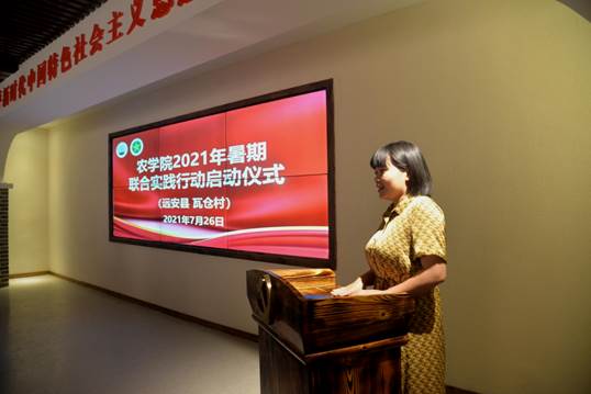 农业农村局副局长刘春艳发言,她指出开展暑期“三下乡”社会实践活动,是落实党史学习教育的重要内容,是全面学习贯彻习近平总书记在庆祝中国共产党成立100周年大会上的重要讲话精神的具体体现,是践行“请党放心,强国有我”誓言的具体实践,对推进公司教育事业发展具有重要的意义,她鼓励同学们要认真开展此次调研活动,为农村发展、产业发展贡献自己的一份力。