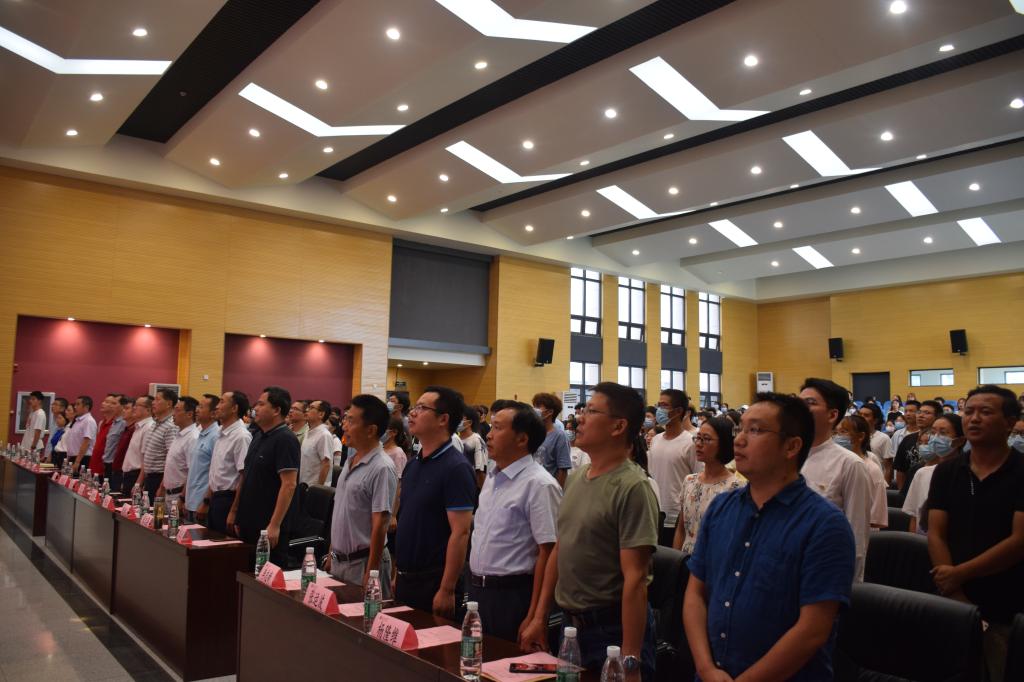 全体师生庄严肃立,齐唱《国歌》,开学典礼拉开帷幕。
