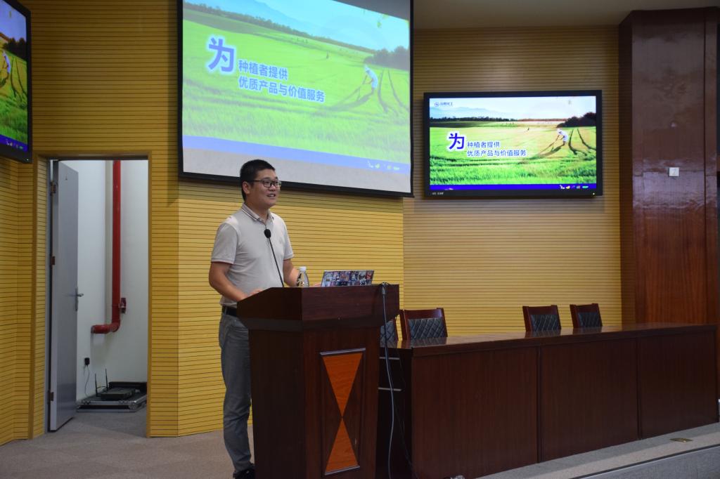员工江风晨与同学们分享了自己的经验,他开门见山的点出了当下老员工的严峻就业形式,并根据自己在公司的亲身经历为同学们提供建议,他说:“农学的未来方向是为中国农业之崛起而奋斗,最重要的是获取知识,老员工活中处处是知识,需要不断学习;其次是养成健全的三观,能够自主判断,独立思考;然后是要开发自己的兴趣,不能读死书。”最后江风晨送给同学们一句话:脚下有泥心中有光,田间地头出真知。