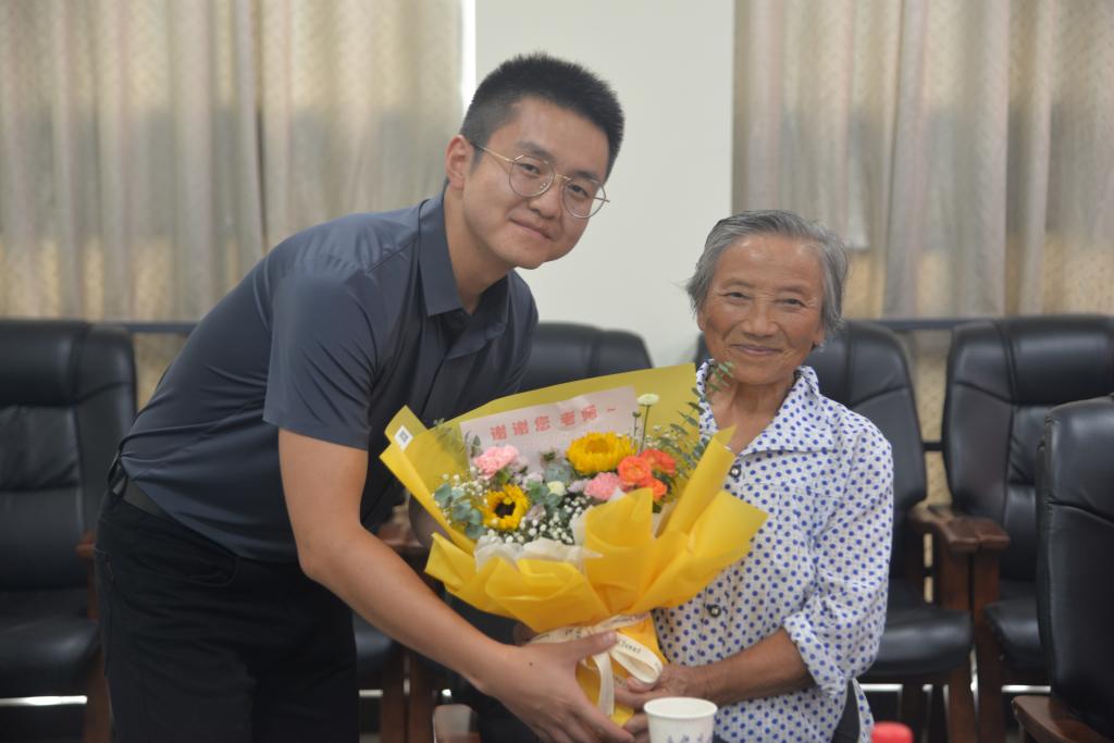 紧接着,新教师代表们向退休教师代表们敬送鲜花和真挚的祝福,表达他们对退休教师的崇高敬意。