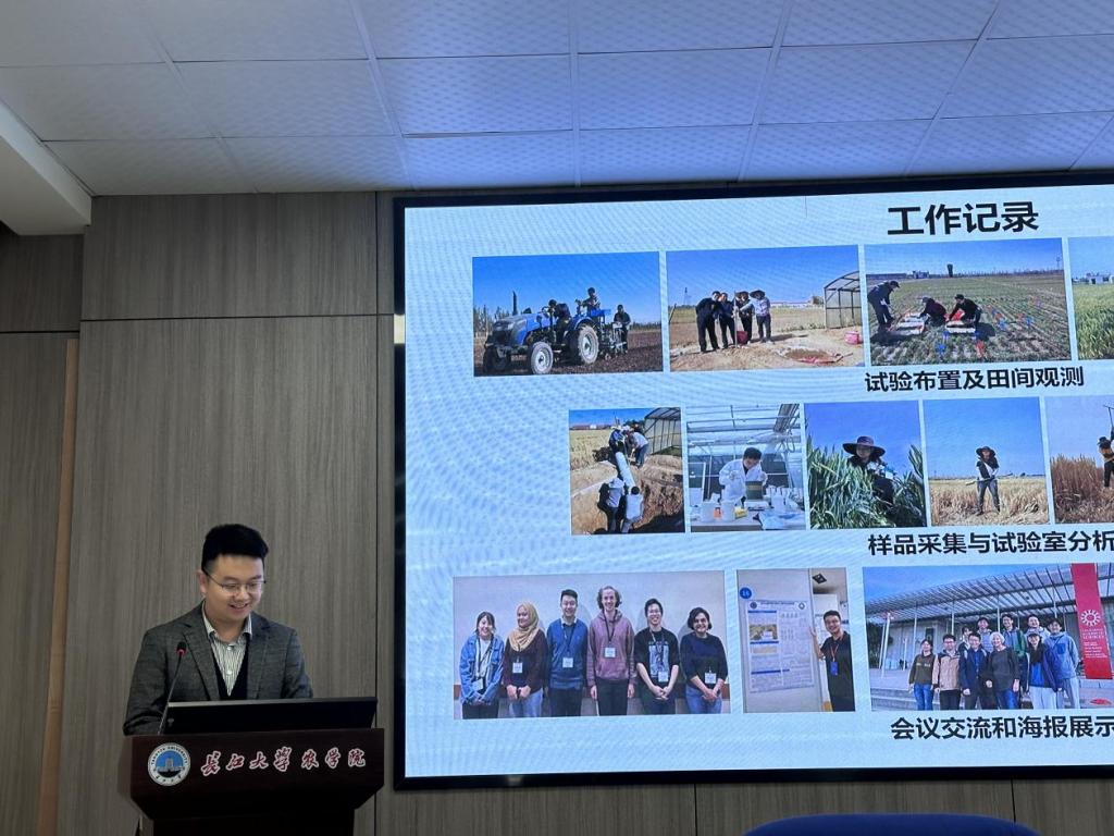 李昊天博士基于冬小麦田间长期调亏灌溉试验,针对植株关键生育期耗水特征,通过土壤植物-大气系统界面综合调控机制提高作物资源利用效率,作了题为“根系冠层协同调控提高冬小麦产量潜力和水分生产力”,将优化农田管理实践与高产作物品种筛选相结合,以减轻环境因素对冬小麦生长过程的负面影响,探索持续提高冬小麦产量及水分生产力的田间管理方案。