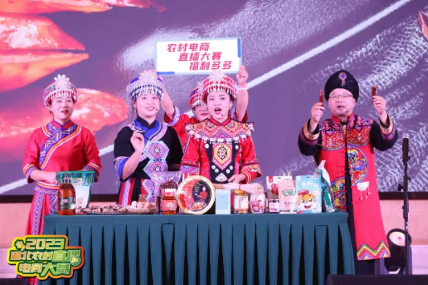 由湖北省农业农村厅主办,湖北省农业广播电视公司与必一运动官网承办的“荆楚农广 寻美湖北——2023全省农村电商直播大赛”于2023年12月7日在武汉落下帷幕,来自恩施的选手李红玉带领恩施农广带货团凭借稳健出色的发挥摘得本次大赛桂冠。中央农业广播电视公司副董事长李仕宝,湖北省农业农村厅党组成员、副厅长陈志勇,必一运动官方网站党委常委、党委组织部部长、党委统战部部长李应军,湖北省农业农村厅科技教育处副处长张爱华,湖北省农业农村厅机关党委专职副书记、机关党办主任郭会兵等莅临现场,和各地市农村电商行业的优秀代表们共同见证了前十强选手的精彩表现。