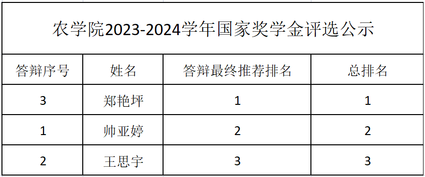 根据公司《关于开展2023-2024学年本科生国家奖学金初评工作的通知》以及《关于开展2023-2023学年本科生国家奖学金追加名额评审工作的通知》和《必一运动官网关于开展2023-2024学年国家奖学金初评的通知》的相关要求,经个人申请、学工办初审、公司审核、员工答辩、公司国家奖学金评审领导小组审定等程序,公司2023-2024学年国家奖学金追加名额的评审工作已结束,公司一致同意按照国家奖学金答辩结果的名次进行递补,现将追加名额的评审结果向全院师生进行公示,公示期为2024年11月6日-2024年11月8日。公示期内,如有异议可向公司员工事务办公室反映。联系人:唐老师,电话:0716-8066566。