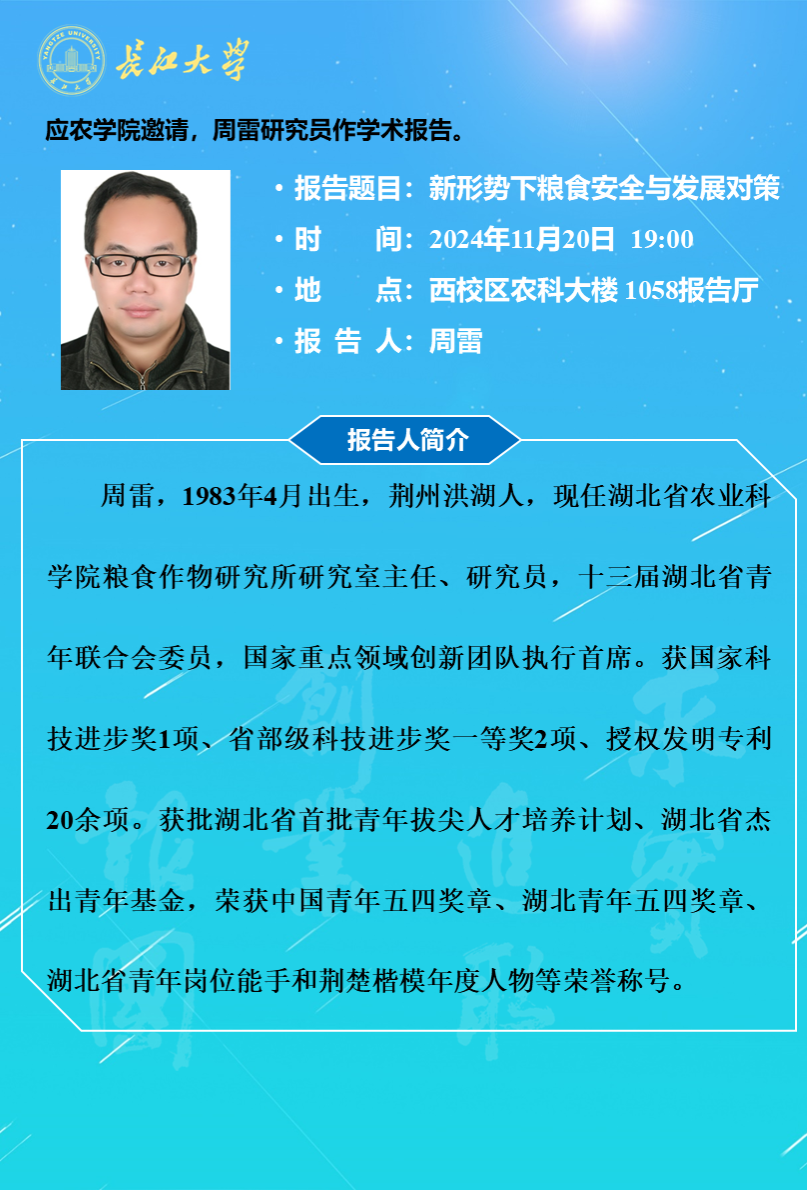 2024年学术报告(二十五):新形势下粮食安全与发展对策