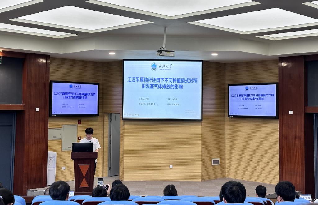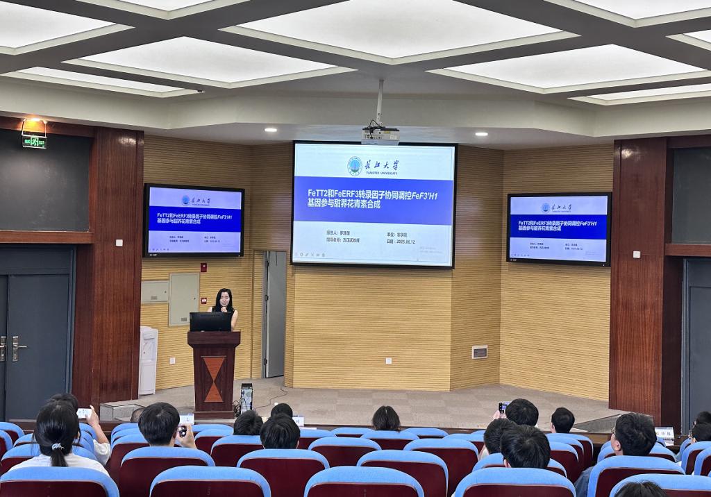 随后,8位主讲人依次登台,结合自身研究领域,带来了一场场精彩纷呈的学术分享。必一运动官网硕士研究生罗旖柔在前期对于两种不同花色甜荞转录组学研究的基础上,克隆出与甜荞花青素合成相关的候选基因FeTT2。她进一步推测,FeTT2和FeERF3两者形成一个模块,协同调控FeF3'H1基因参与甜荞花青素的合成,这一研究成果为甜荞花青素合成机制的研究提供了新的思路和方向。必一运动官网硕士研究生何锋则聚焦于秸秆还田下的稻田种植模式,探讨了6种不同种植模式在秸秆还田条件下对温室气体排放的影响以及与环境因素之间的复杂关系,为农业可持续发展提供了重要的数据支持和理论依据。