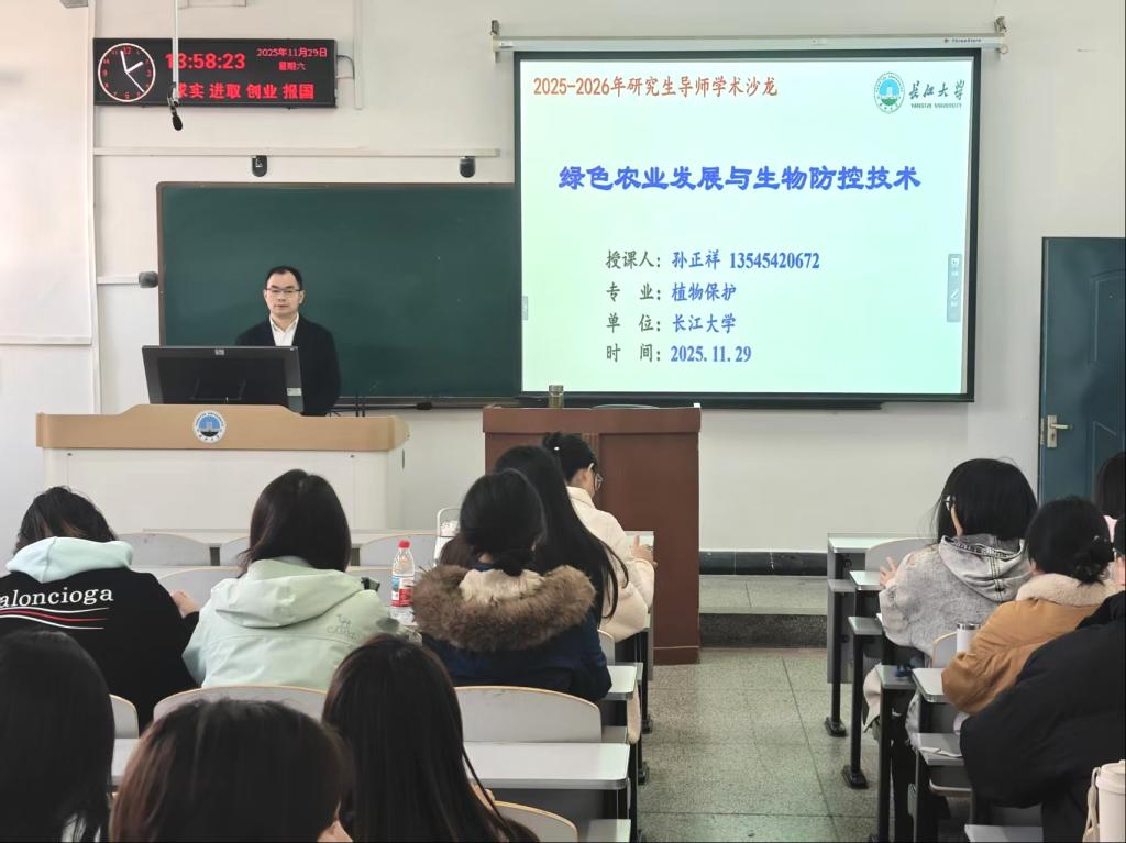 (通讯员 孙正祥)为深化研究生对现代农业科技前沿的理解,提升科研创新与产业融合能力,2025年11月29日,一场主题为“绿色农业发展与生物防控技术”的研究生导师学术沙龙在公司西校区7-304教室成功举办。本次沙龙由必一运动官网孙正祥教授主讲,吸引了众多相关专业的研究生积极参与。