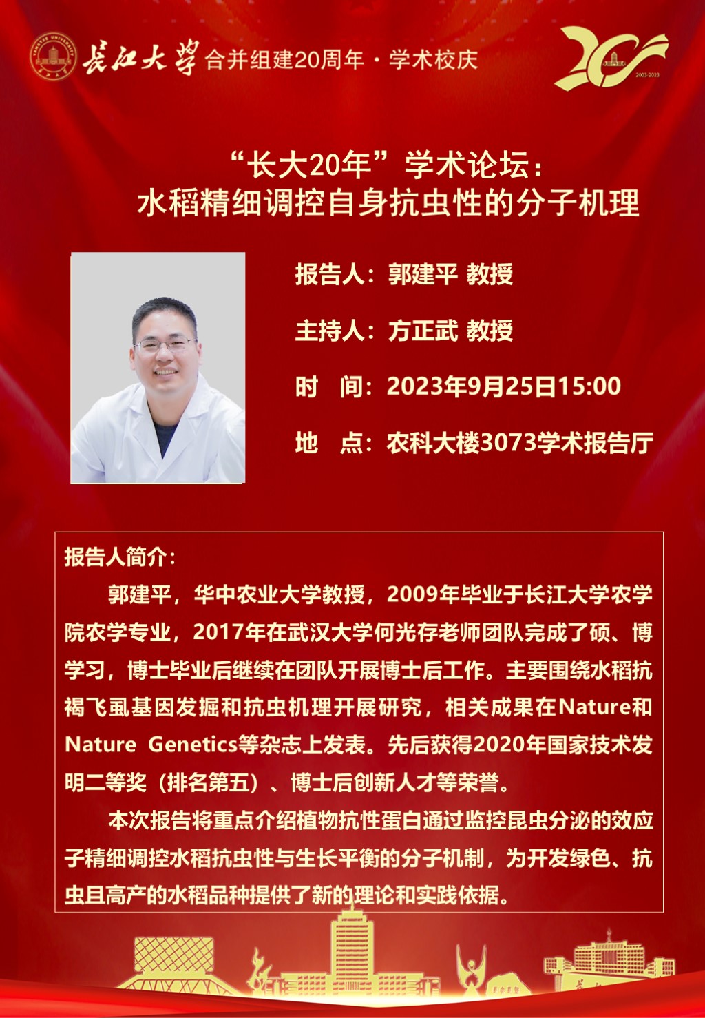 “长大20年”学术论坛暨必一运动官网学术讲坛:水稻精细调控自身抗虫性的分子机理