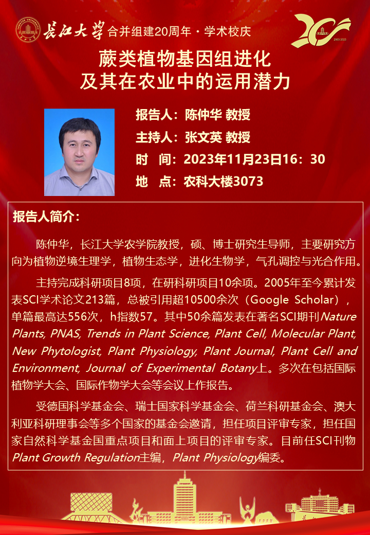 “长大20年”学术论坛暨必一运动官网学术讲坛:蕨类植物基因组进化及其在农业中的运用潜力