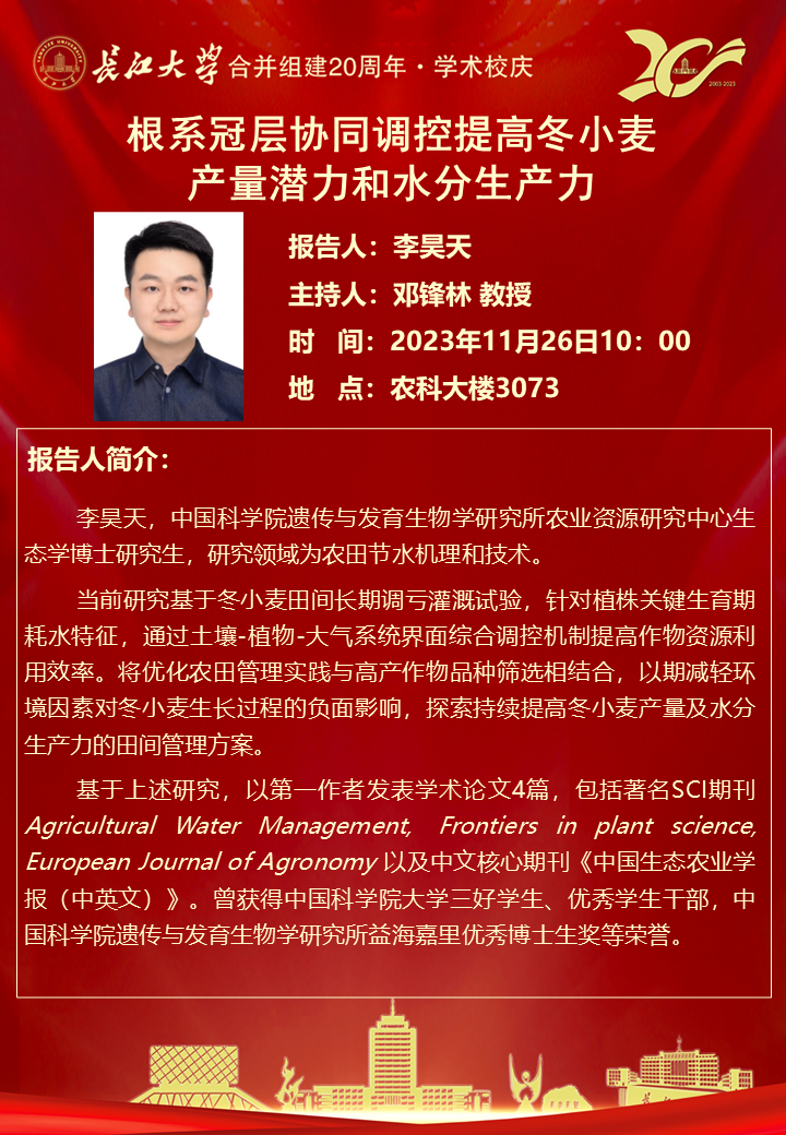 “长大20年”学术论坛暨必一运动官网学术讲坛:根系冠层协同调控提高冬小麦产量潜力和水分生产力