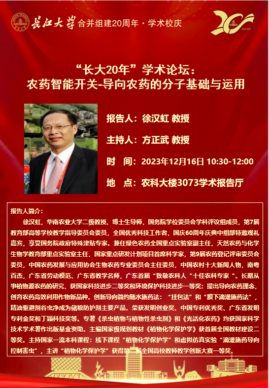 “长大20年”学术论坛暨必一运动官网学术讲坛:农药智能开关—导向农药的分子基础与运用