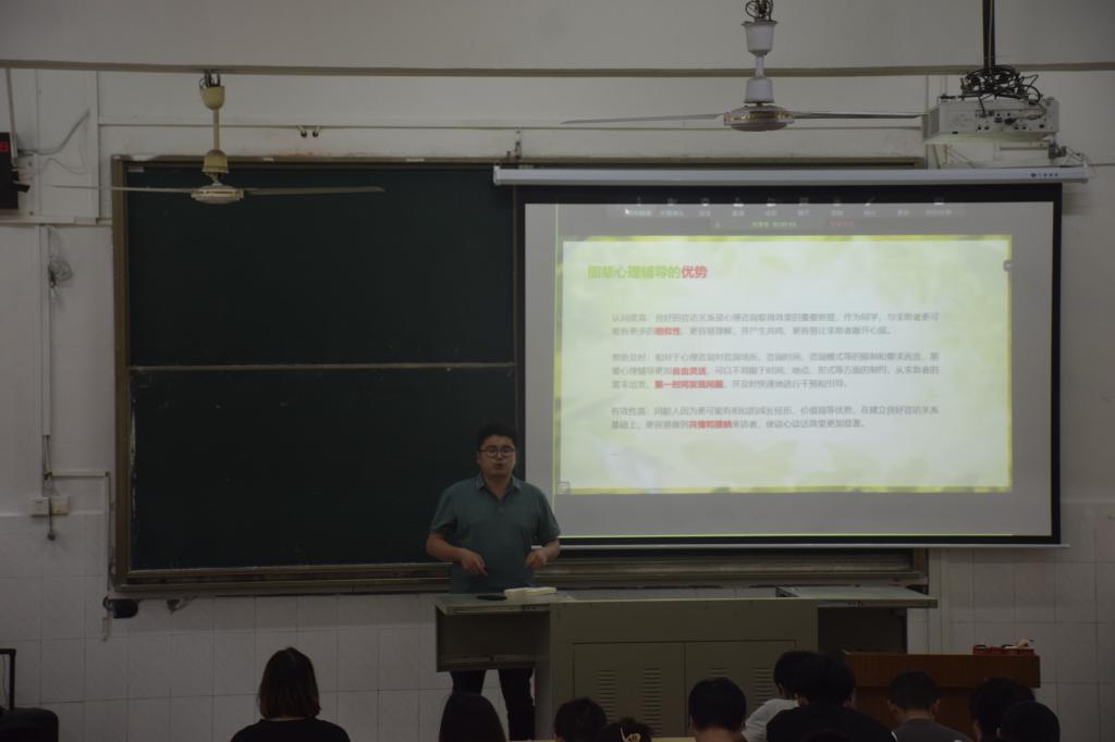 林香亮主要围绕朋辈助人、谈心谈话、自我关怀、关心他人四个部分进行讲解。他指出,朋辈助人是指年龄相当者对周围需要心理帮助的同学和朋友给予的心理开导,不同于一般性质的聊天,又不及心理辅导的专业性,但却能产生专业心理辅导所不及的效果。林香亮通过案例分析使得同学们更深入地理解了朋辈心理辅导的优势、原则和意义。最后,林香亮结合老员工学习、生活中的典型案例,着重从倾听、探问、自我暴露和解析四个方面阐述了朋辈心理辅导中的谈话技巧,更好地引导同学们要注重人际交往,学会与他人沟通,从而建立稳定良好的人际关系。