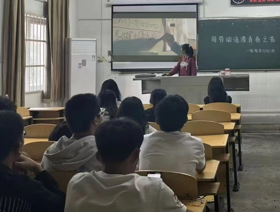 植物类32302班举办了“用劳动浇灌青春之花”主题班会,赵乐妍同学向全班讲解有关劳动教育的相关理论,如劳动教育的目的、劳动的价值观、劳动精神等,强调劳动教育的重要性以及实现劳动教育的路径,提出了老员工应正确认识劳动创造价值、创造财富、创造美好生活的道理,牢固树立劳动最光荣、劳动最崇高、劳动最伟大及劳动最美丽的思想观念。