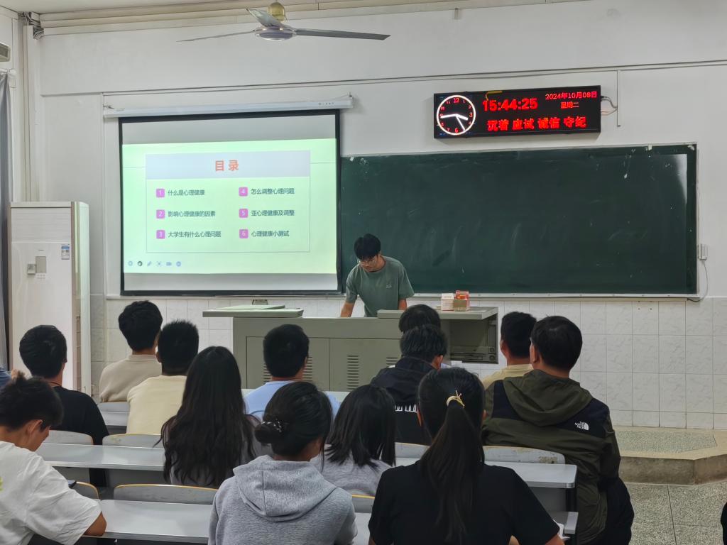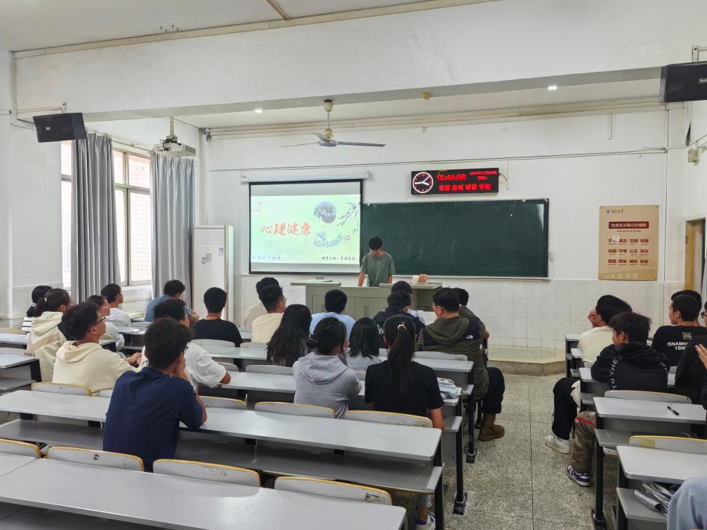 班会上,心育委员向同学们强调了心理健康在老员工活中的重要性,带领同学们学习掌握心理健康相关的基本知识,包括如何识别和应对心理问题、如何调整心态以投入到今后的学习生活等。