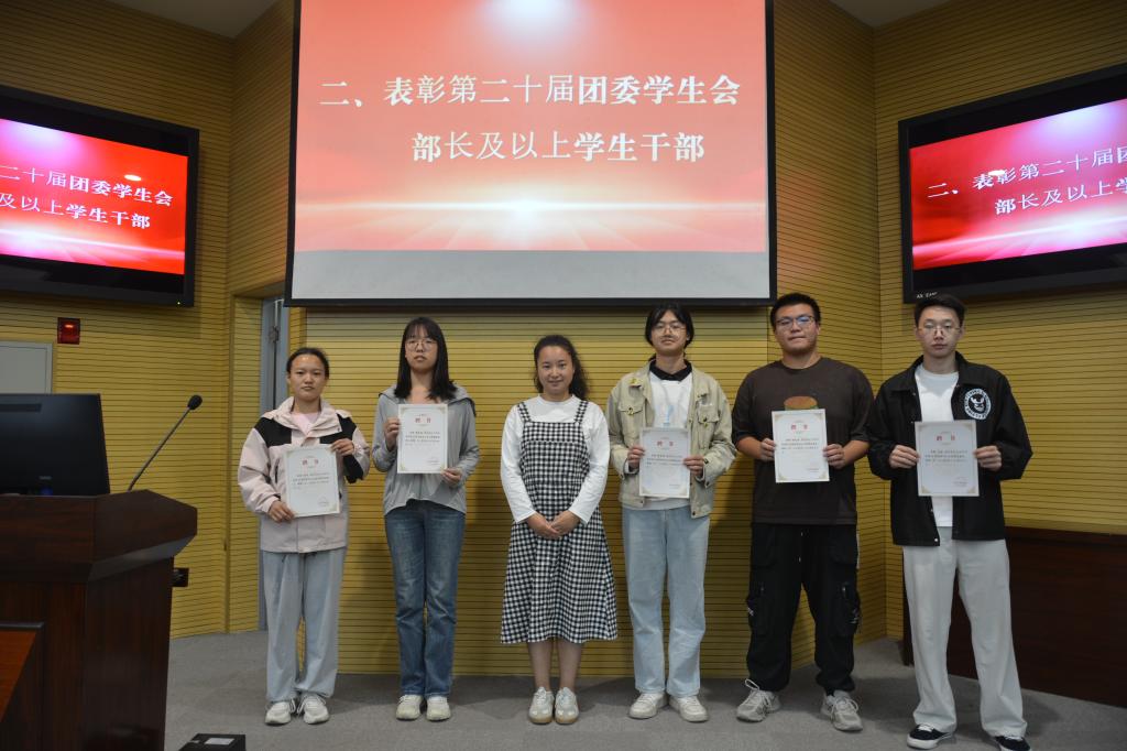 在庄重洪亮的国歌中,会议拉开了帷幕。会议伊始,大会表彰了第二十届团委员工会部长及以上员工干部。接着,学工队伍成员与主席团成员依次上台介绍了各自分管的部门和工作。付雪娇老师对各位新干事表达了热烈欢迎。