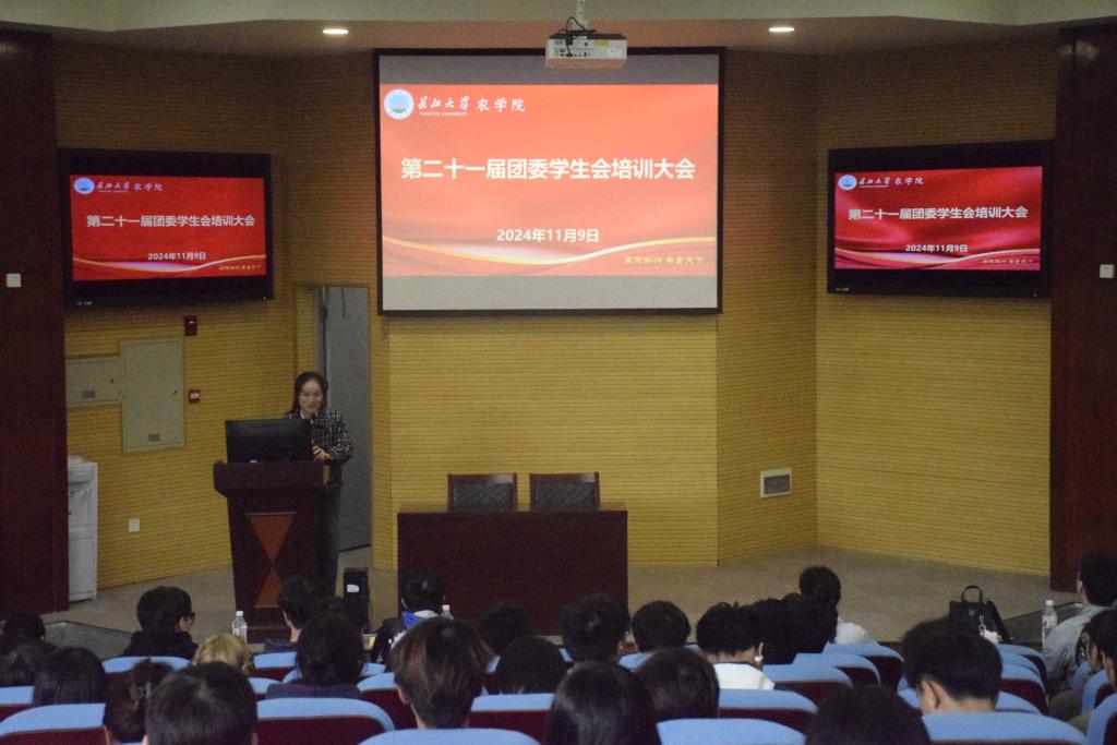 (见习记者 严树彬 向建华/文 何遥 徐馨悦/摄)为进一步加强员工干部队伍建设,提高员工干部的工作能力和服务水平,11月9日下午,公司在农科大楼1056报告厅开展了第二十一届团委员工会培训大会,公司党委副书记尹小华、员工金骋怀、范如旖及全体员工干部、各班团支部委员参加本次培训大会,会议由团委书记付雪娇主持。
