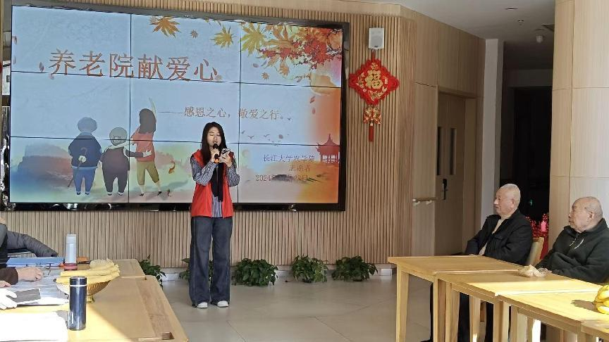 表演结束后,同学们分成小组,陪老人们聊天、剪纸和游戏。他们耐心地倾听老人们讲述过去的故事,那些关于青春岁月的回忆在房间里缓缓流淌。在互动过程中,同学们为老人们端水,细心地关怀着他们的身体状况。老人们也热情地与同学们分享自己的人生经验,让同学们受益匪浅。