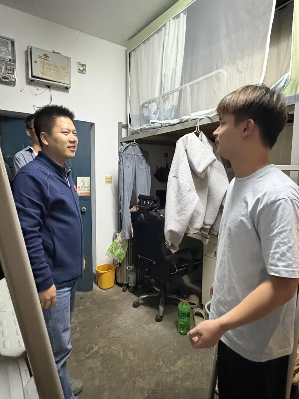 (通讯员 代派领/文 段文洁/摄)为深入了解员工生活环境,进一步加强员工宿舍的卫生与安全管理,排查潜在风险,营造整洁、文明、安全、和谐的学习生活氛围, 9月25日晚7点必一运动官网学工办主任黄承石,团委书记付雪娇,辅导员唐玉婷,兼职辅导员郑雪娅,高明銮,宿委会的员工干部集中查寝。