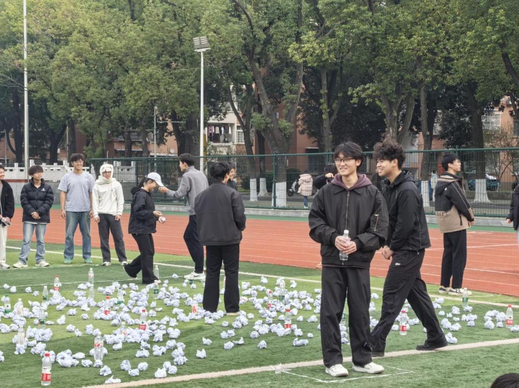 随后,同学们准时在田径场集合,教练介绍了本次活动的流程。在首个项目“呼吸的力量”中,全体成员齐心协力吹爆气球,在 40 分钟的限时挑战里,充分展现了团队的高效沟通与执行力。接着,“沙场点兵”项目接力开启。各团队推选指挥官、侦察兵与士兵角色。同学们在角色协作中深刻体会到团队配合的重要性。