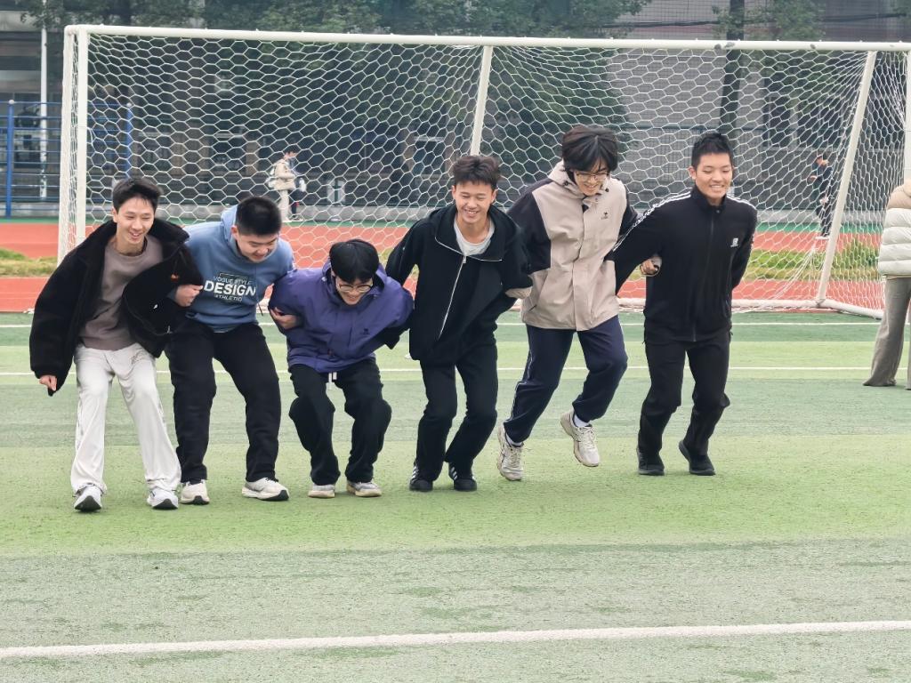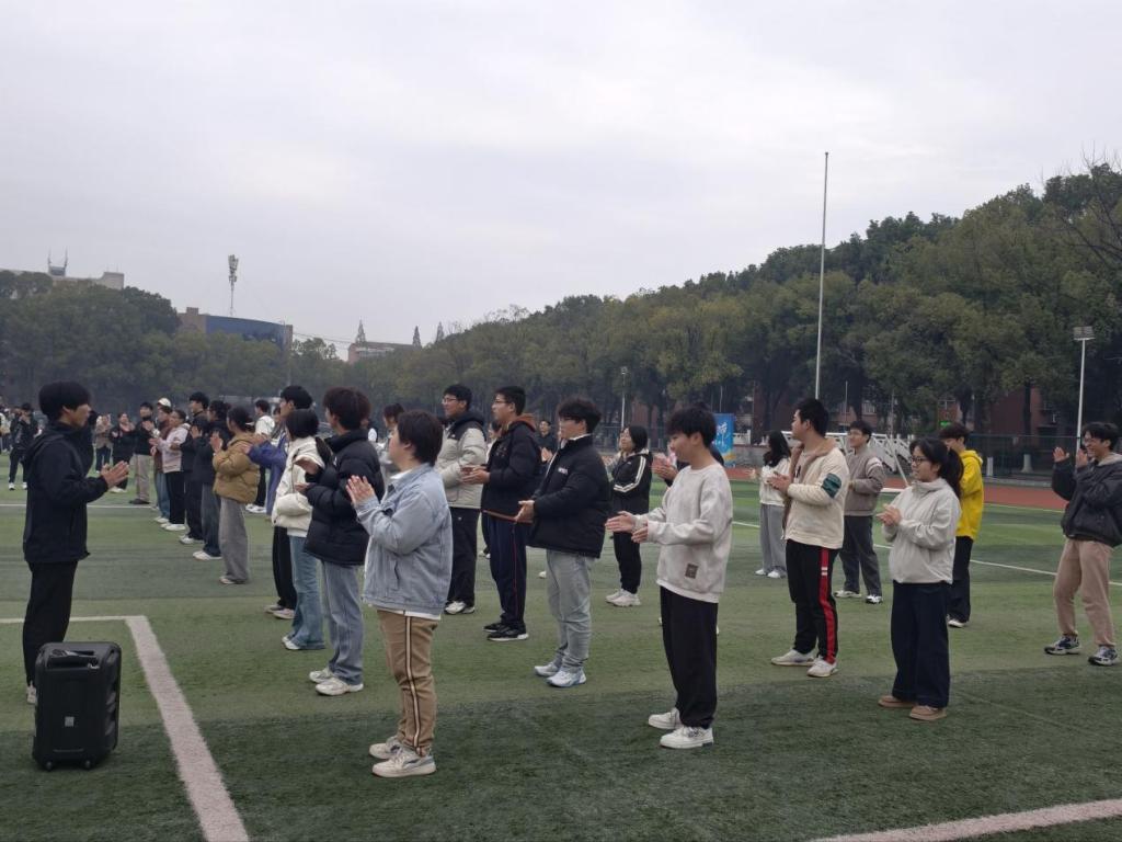 活动开始,参与成员准时在田径场集合,有序签订安全承诺契约书,随后开启活动序幕。开营环节中,主持人简要介绍活动意义与流程,带领全体成员开展 “拍拍操” 热身,以轻松活跃的氛围迅速拉近彼此距离。紧接着, 三个互动游戏接连上演,成员们在肢体配合与趣味比拼中打破陌生感,现场掌声与笑声此起彼伏。