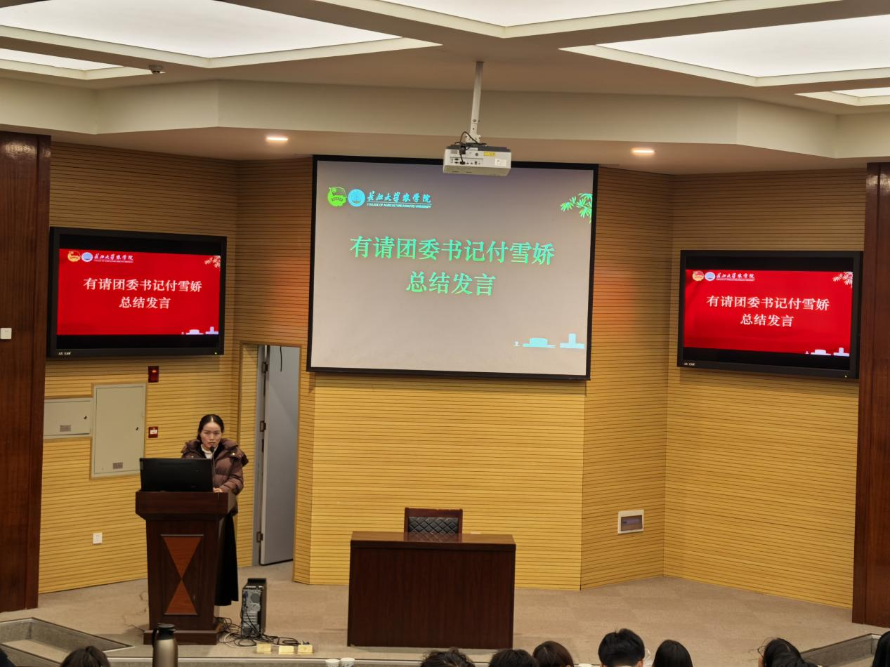 付雪娇老师对团委员工会年度工作给予充分肯定。她表示,全体成员以责任担当诠释青春底色,用实干奉献服务师生需求,各项工作取得了实实在在的成效。同时,她提出殷切期望:团委员工会要打造特色品牌活动,增强活动吸引力与影响力;还要强化自身建设,锤炼优良作风,树立员工组织良好形象;更要平衡学习与工作,珍惜大学时光,全面提升综合素质与履职能力。