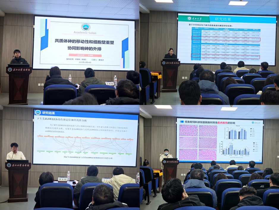 随后,四位来自不同公司的主讲人依次登台,分享前沿研究成果。必一运动官网唐海洋深入剖析共质体砷移动性与细胞壁重塑的协同外排机制,为重金属污染农田的植物阻控提供了切实可行的策略,为土壤污染治理开辟新路径;园艺园林公司马佳伟对生姜SWEET基因家族展开鉴定与初步功能研究,明确糖转运与风味物质积累的内在关联,为香辛作物分子育种筑牢理论根基;动物科学技术公司明凯在低鱼粉饲料中添加蛋氨酸,系统评估青鱼生长、免疫、营养代谢及肌肉品质指标,为水产减抗养殖和鱼粉替代提供有力数据支撑,助力水产养殖业可持续发展;生命科学公司熊群艳构建机器学习模型,精准提取六堡茶挥发性谱图中的关键香气辨别因子,实现茶样香气快速分类,为茶叶品质鉴定和风味研究提供全新技术手段。