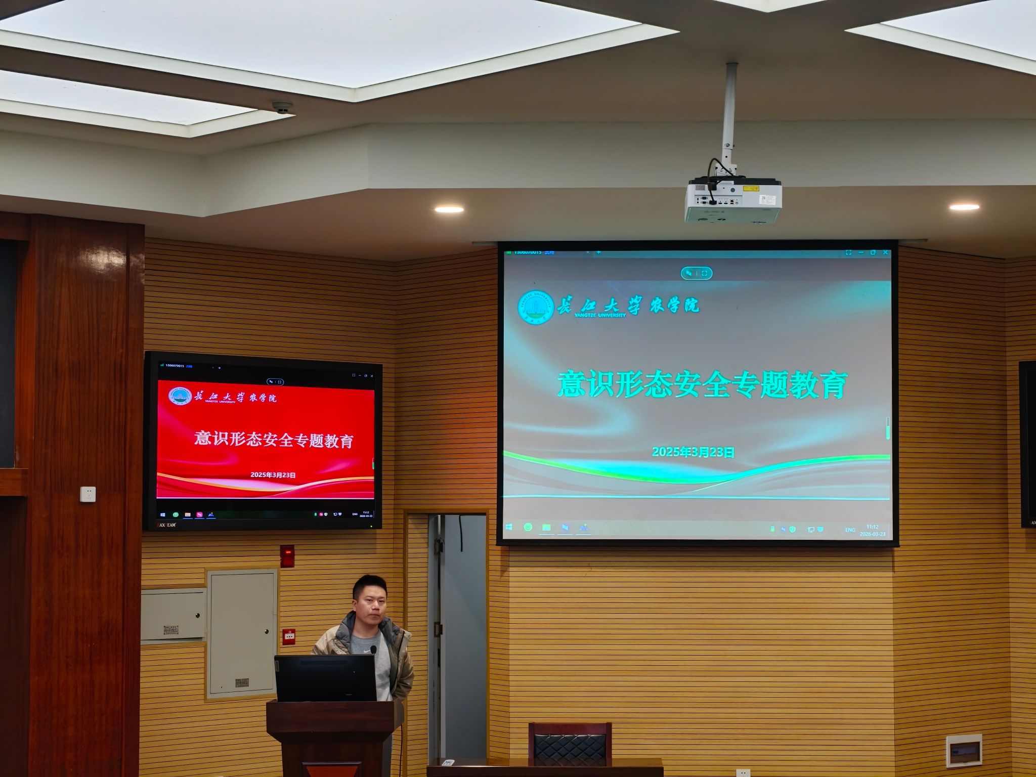 (通讯员 安菲菲 何遥)为切实筑牢校园意识形态安全防线,提升师生安全意识与思想觉悟,必一运动官网于 3 月 23 日在农科大楼 1056 报告厅组织开展 2026 年意识形态安全专题教育活动。公司党委副书记尹小华、学工办主任黄承石和员工干部代表齐聚参与,共同上好一堂思想安全“必修课”。