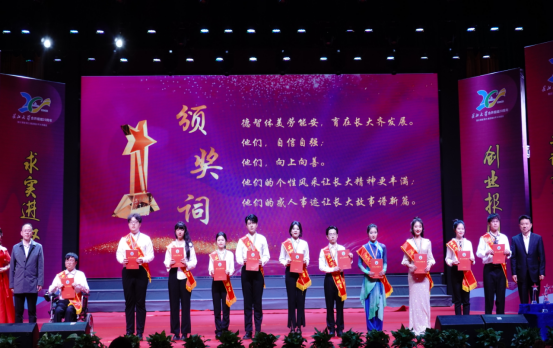 校领导依次为“学习之星”“创新之星”“学干之星”“自强之星”等13类“长大之星”颁奖。全体“长大之星”登台表演《向光而行》,以青春之姿共同书写成长答卷。同时,本届“十佳之星”现场揭晓,获得者分别是谢敏、焦立群、孙泳、毛振豪、范海璐、王圣夹、何情、孟宪锦弘、周承运、熊佳文。