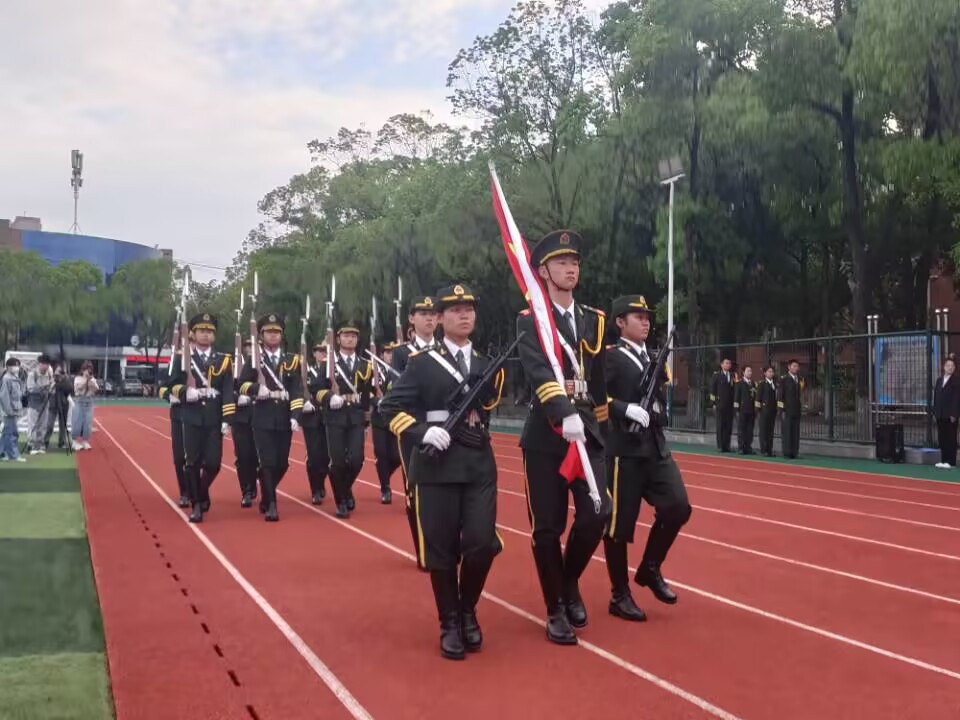 升旗仪式于7:00开始,6:20操场已人头攒动,静待五星红旗的升起。7点整,国旗班的旗手迎着朝阳,踏着矫健的步伐、怀揣饱满的热情,护卫着五星红旗进场。五星红旗在豪迈的《义勇军进行曲》中缓缓升起,师生行注目礼,共唱国歌。在国旗下,在暖阳中,机械与工程公司的同学们带来了朗诵与合唱《盛世如愿》,激昂高亢的歌声回荡在校园的每个角落。