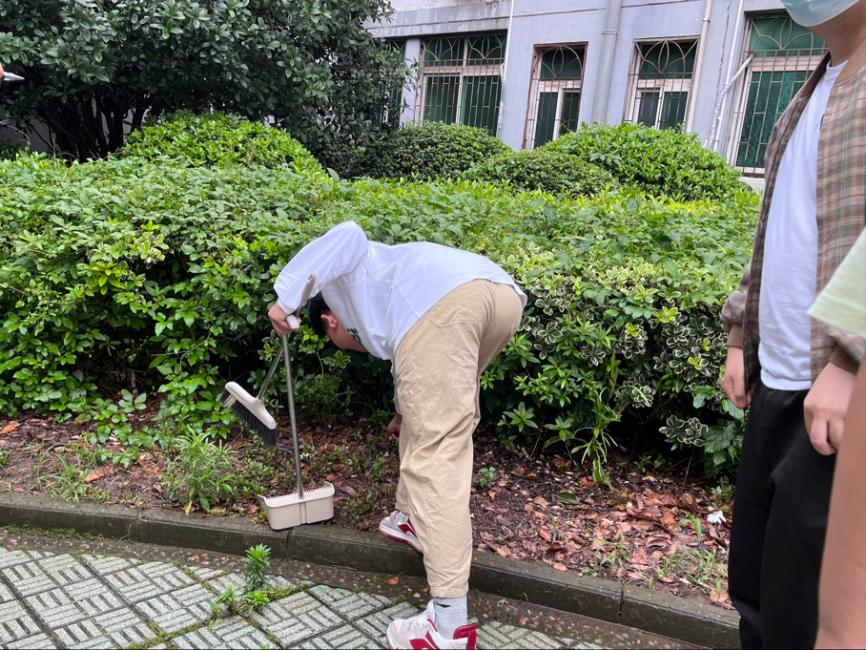 活动是载体,行动是体现,目的在养成。放眼望去,同学们仍然在埋头清理。在草丛中、水池里,道路两旁的落叶、洗衣房的纸屑都是大家的清扫目标。
