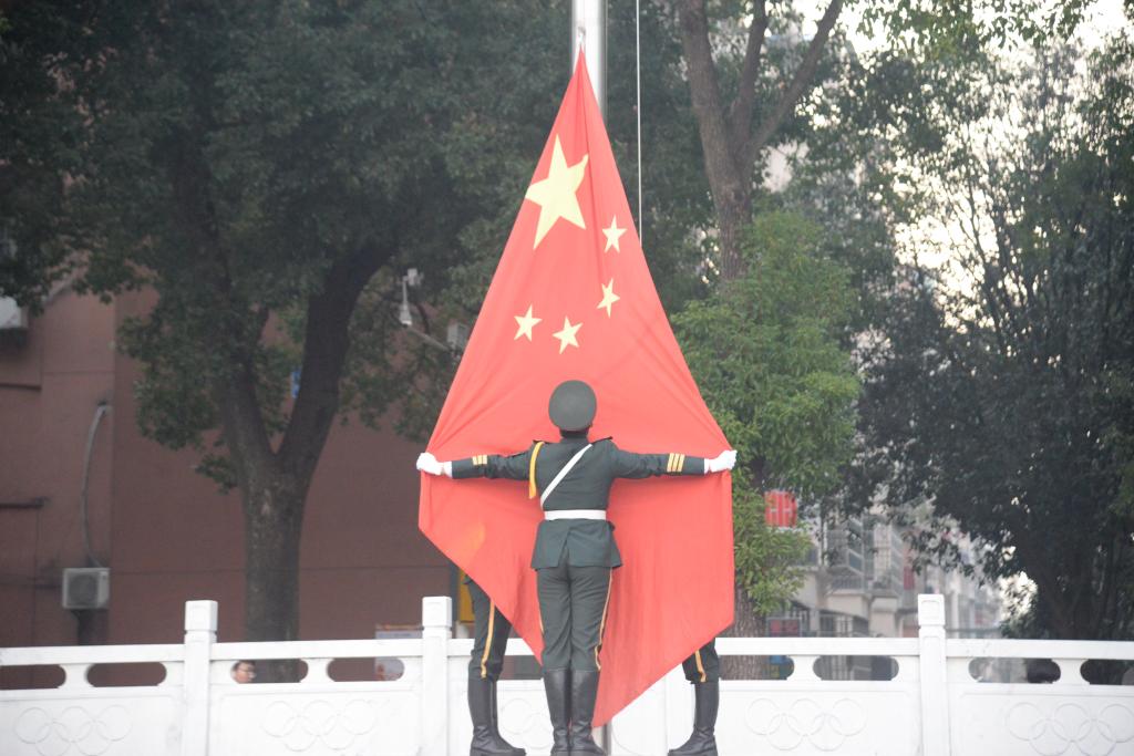 农资32301班的史盛巧同学带领全体师生合唱《我和我的祖国》,升旗仪式在同学们激昂热情的歌声中落下帷幕。