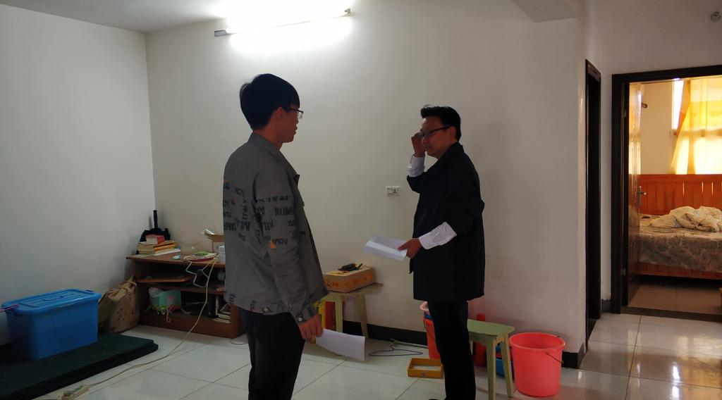 研究生辅导员林香亮向研究生详细询问了校外住宿的居住环境、日常生活状况,并在思想、学习、生活等方面进行了深入交流,提醒在外住宿研究生在学习、生活上遇到问题应及时向导师、辅导员反馈,同时要与家长保持经常联系,确保学习生活健康有序。