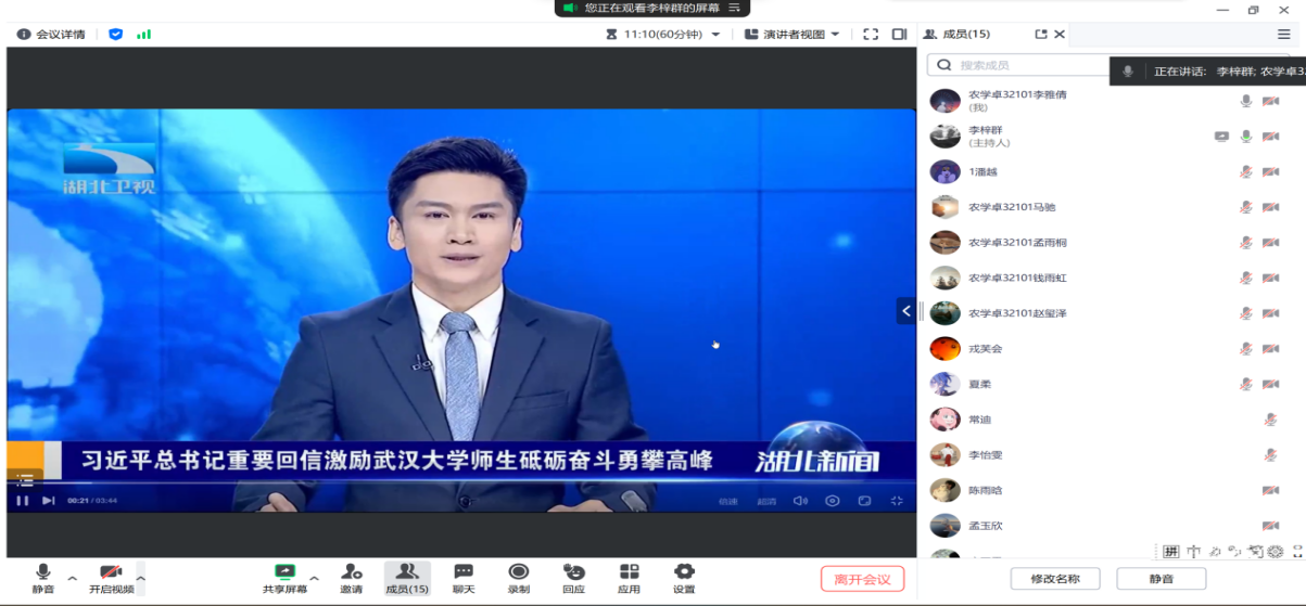 其中,各班班长告知大家要加强创新理论学习小组组织建设,规范学习制度,深入学习习近平总书记的重要回信精神。习近平总书记给武汉大学参加中国南北极科学考察队师生代表的回信中,勉励师生要用国家的大事业磨砺青年人的真本领,希望公司广大师生始终胸怀“国之大者”,砥砺奋斗,练就过硬本领,勇攀科学高峰,为实现高水平科技自立自强和建设教育强国、科技强国、人才强国和全面推进中国式现代化作出更大贡献,丰富创新理论学习的内涵,确保学习成果得以落实。