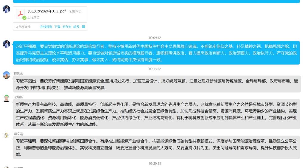 为使理论学习取得良好效果,各班级利用班会组织学习、讨论,利用业余时间线上、线下自学等形式进行。