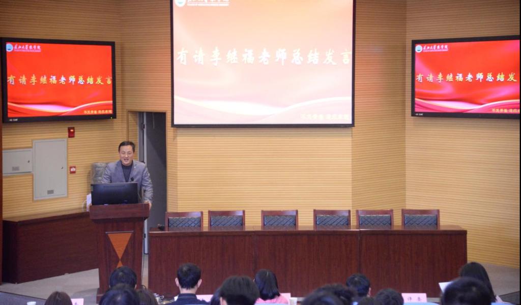 最后,李继福老师对此次答辩进行了总结。他提到:很欣慰能看到各班级能够积极竞选,从各位代表的发言中看到了当代青年的青春与活力,激起了自己在入团、入党时的美好回忆。同时,他也鼓励广大男同胞能像女同胞一样能从幕后勇敢走到台前,一展风采。