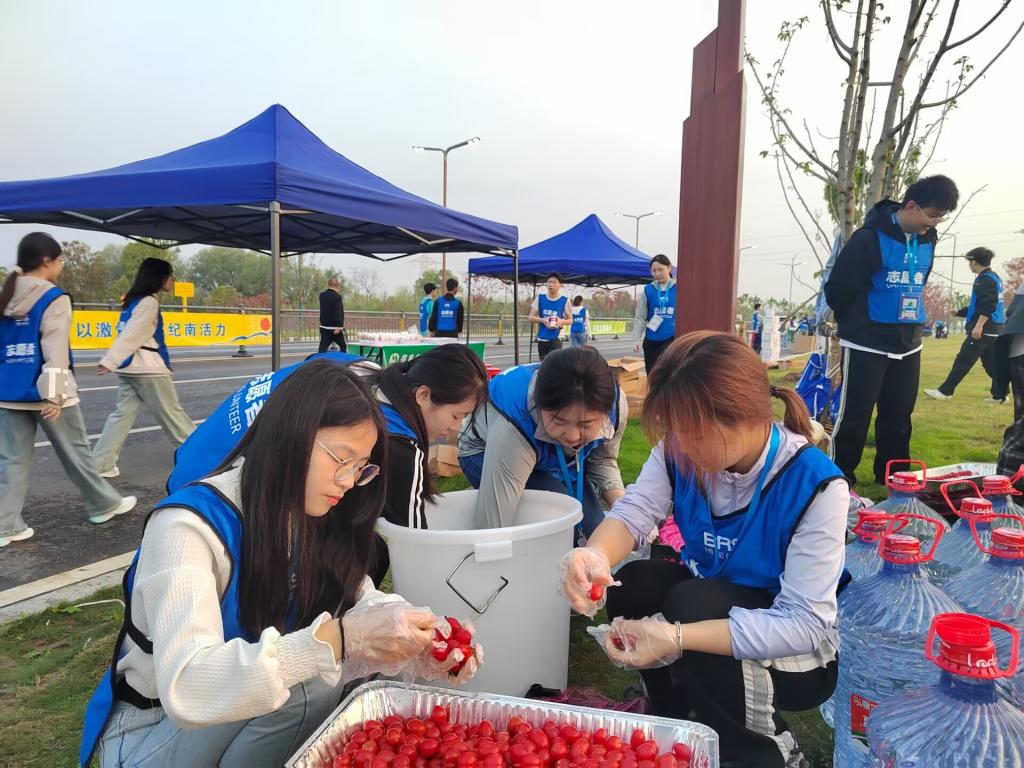 3月31日凌晨四点,志愿者们集结出发,乘车前往各自工作区域,他们追光而遇,沐光而行,有序进入工作模式。在比赛期间,必一运动官网的部分志愿者们在饮料水站提醒选手及时补充水分,防止选手在比赛过程中出现脱水现象,导致出现头晕、头痛、运动型中暑等症状。他们分工明确,一人摆放杯子,一人整理,一人倒水,为防止比赛中选手取水打翻杯子,他们合理调整每个水杯之间的间隙。在高峰期时,他们配合默契,井然有序地保障着赛事饮水的供给。还有一部分志愿者为营造良好的比赛环境,不影响参赛选手的成绩,在各个点位收集参赛者散落的随身物品。
