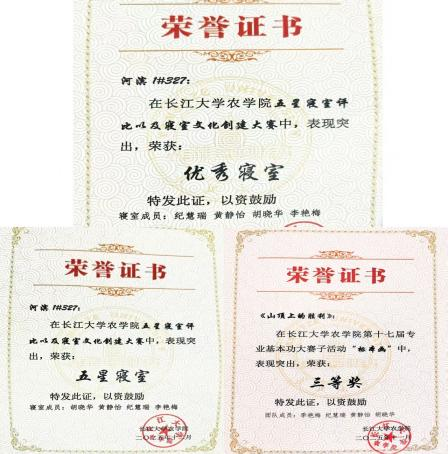 当捧起荣誉的那一刻,证书的光芒映照着四张明媚的笑脸。往后岁月,这个装满青春与情谊的小窝,依旧会以包容为伴,以温暖为光,让四位姑娘的友谊在时光里生长,让这间小小的寝室,永远盛放着最炽热、最真挚的青春光芒。