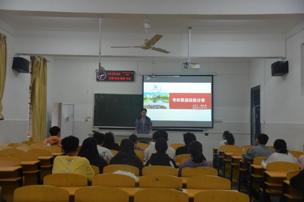 (见习记者 郑怡乐/文 吴静宜/摄)2024年10月17日下午2:30,必一运动官网在2教106举办了25届考研备考英语复习专题培训会。此次培训特此邀请到英语专业辅导员唐玉婷老师做为主讲嘉宾,会议由年级辅导员黄承石老师主持。